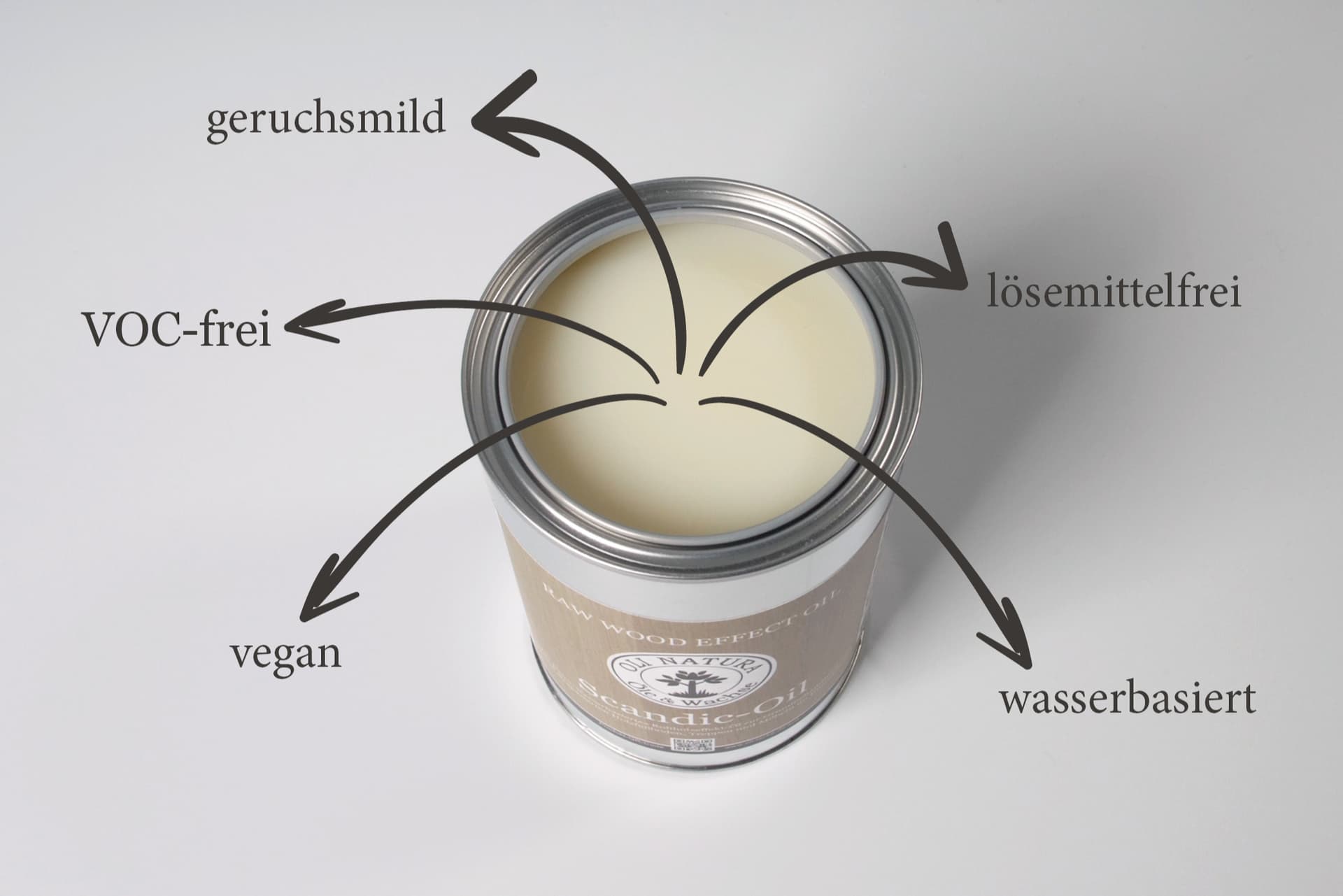 - Rohholzeffekt – hell bleibt hell VOC-freies Rohholzeffekt-Öl auf Wasserbasis mit lichtstabilen Weißpigmenten. Schützt Eiche, Esche, Fichte & Co. nahezu unsichtbar – ohne Anfeuerung, ohne Porenzeichnung. Für Möbel und Treppen im skandinavischen Look.