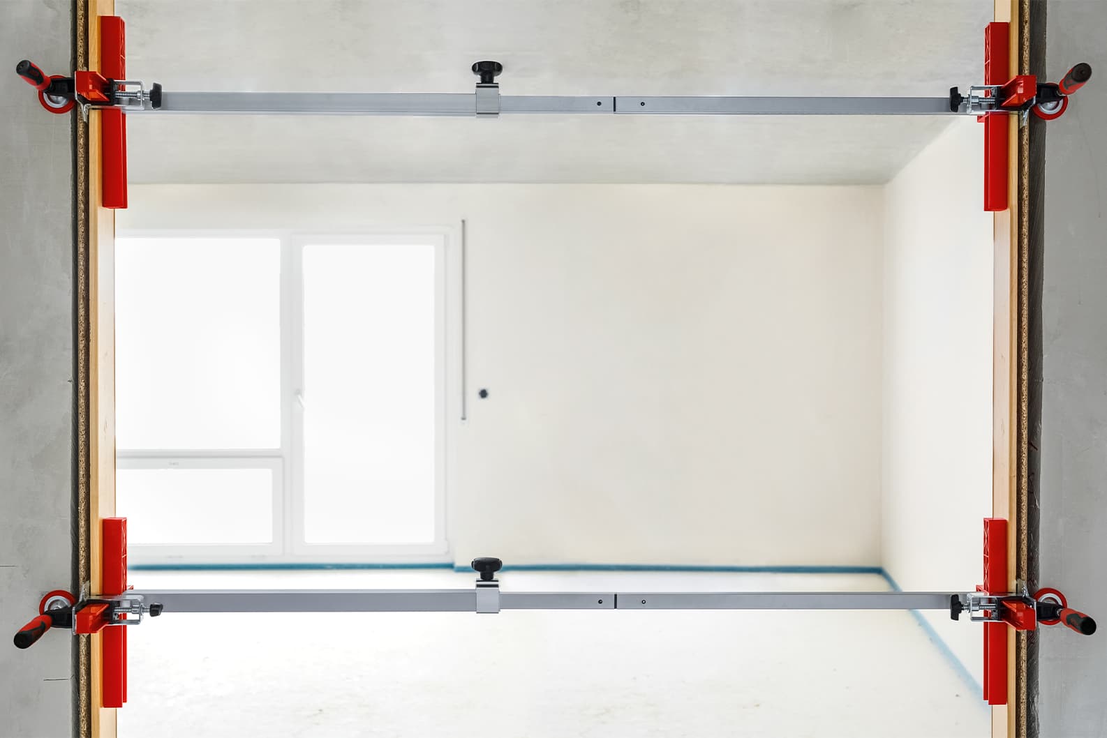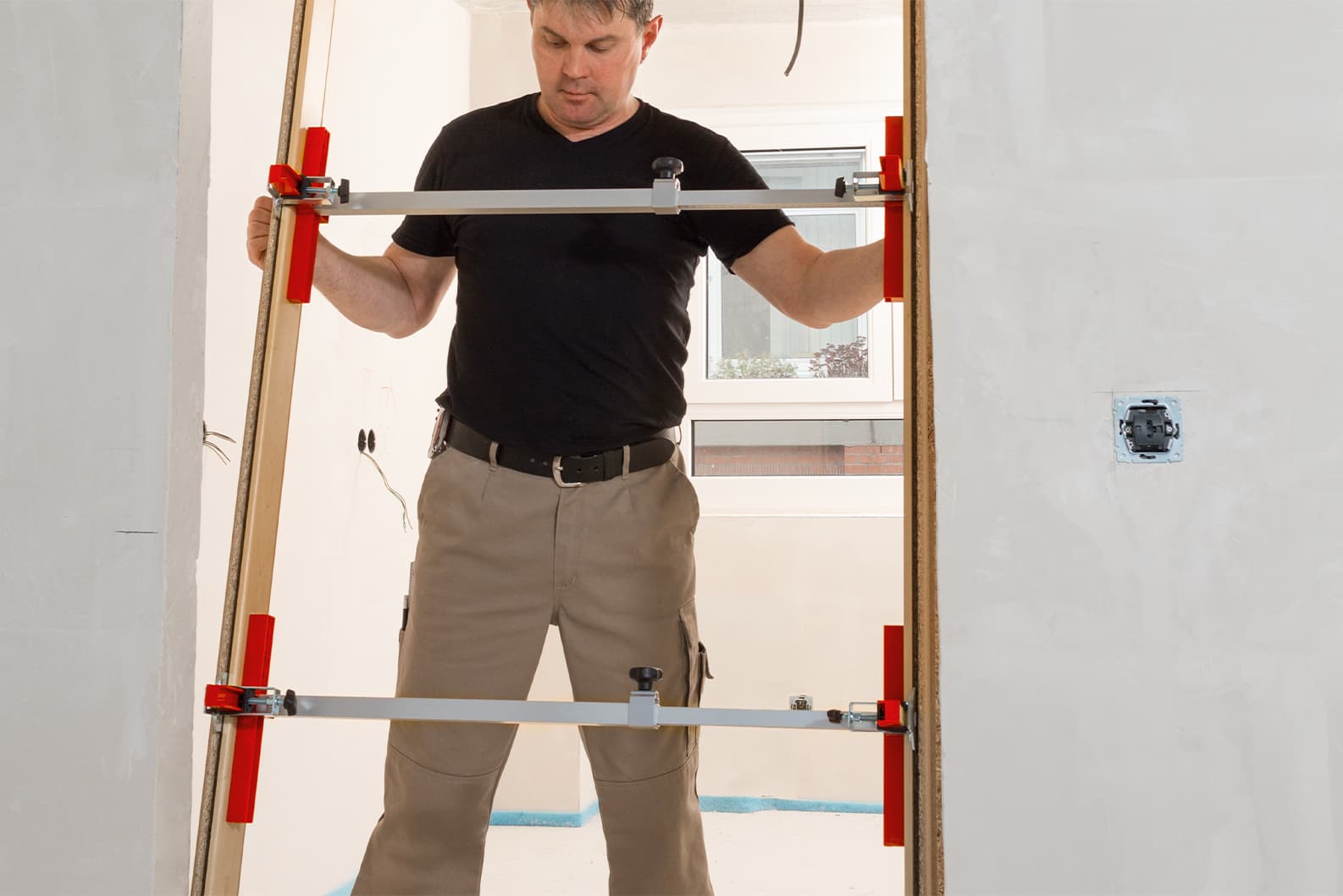 Door frame assemblies using assembly foam require special tools that enable precise alignment and support. And BESSEY offers a solution for precisely this: a door frame assembly system with perfectly coordinated clamping tools.