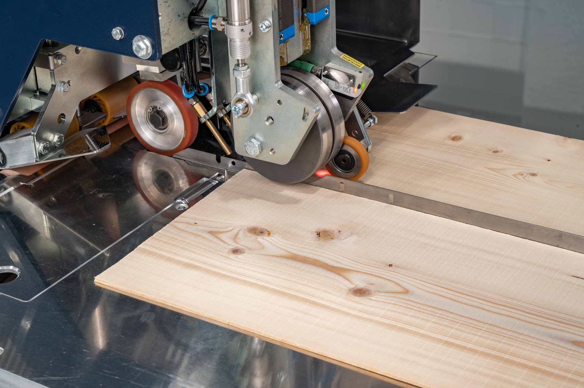 Precise veneer gluing guaranteed.Want to join precious veneers in an extraordinarily innovative way? The KUPER FLI makes it possible for you. The KUPER FLI unites innovative technology with the highest production quality. The efficient heating system with simultaneous contact pressure, precise veneer feed and intelligent energy management make our machine the first choice for anyone working with high-quality veneer. Kuper excellent.