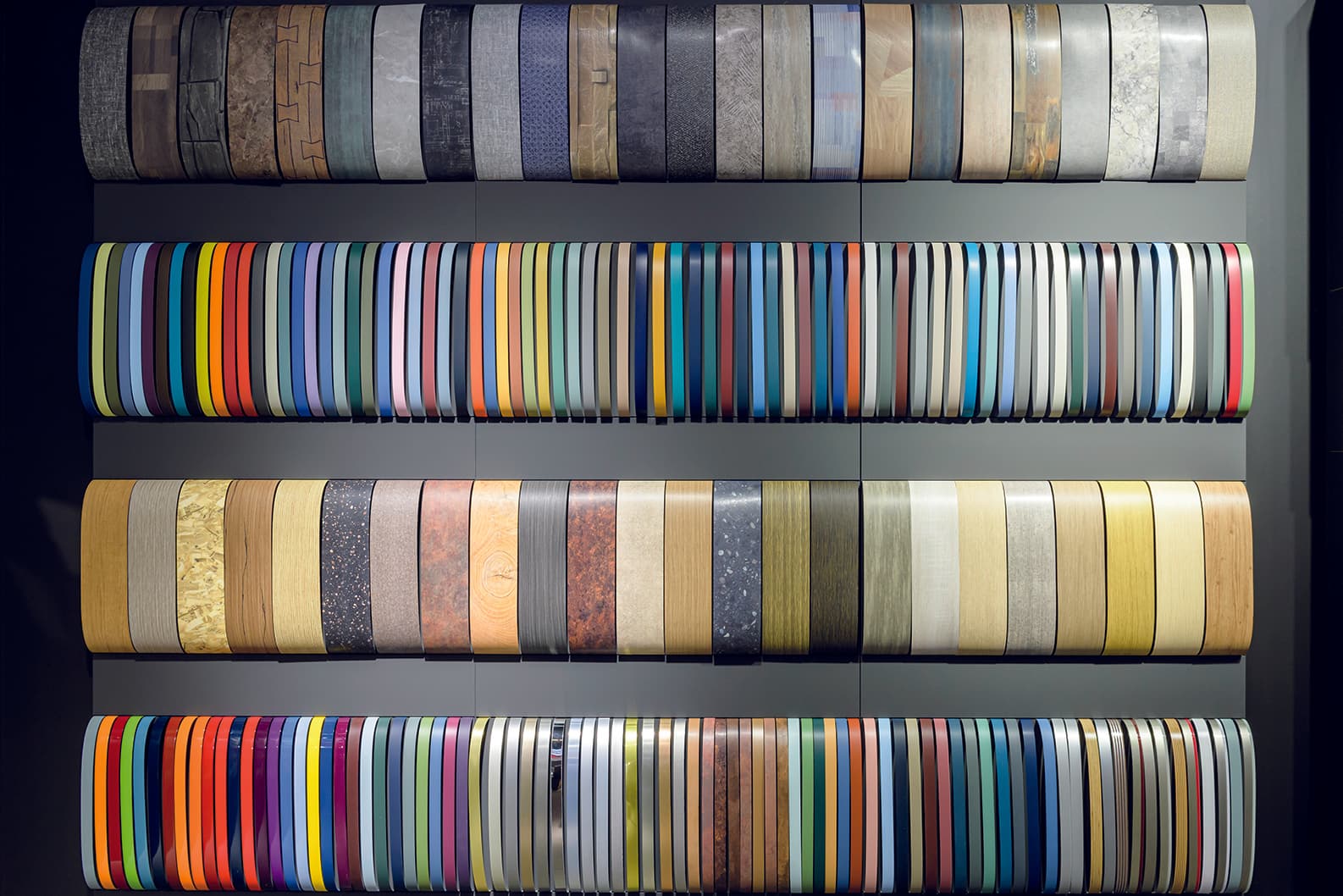 „The best edging is always the one you don‘t see!“ is one of our most important guiding principles. We put passion into making the edging material as similar as possible to the furniture surface in terms of look and feel. We supply Europe's largest immediately available range of edgings. This makes us the direct point of contact for every type of edging processing. Features of our edgings are the perfect product surface and easy processing with special finishes. Professional tradesmen can obtain edgings matching their boards in decor and structure from us. We also offers customers products in every length from just 1 m and every width up to 100 mm and dispatch our products in the smallest quantities.