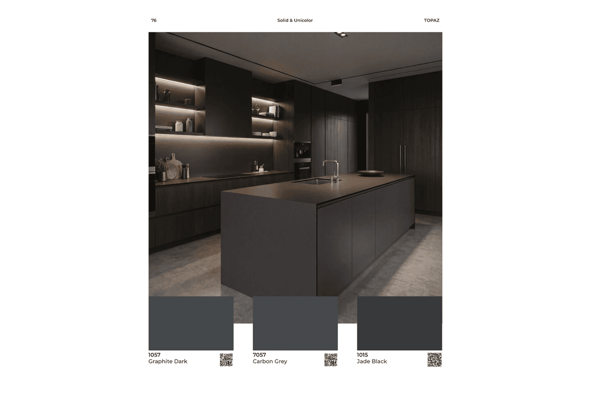 TOPAZ – High-performance compact laminates for kitchen countertops and interior applications.