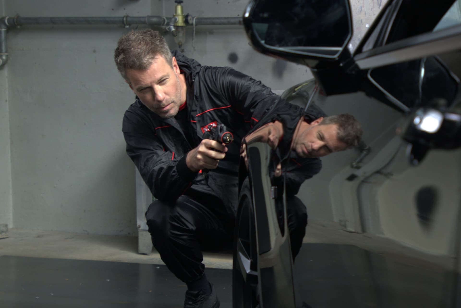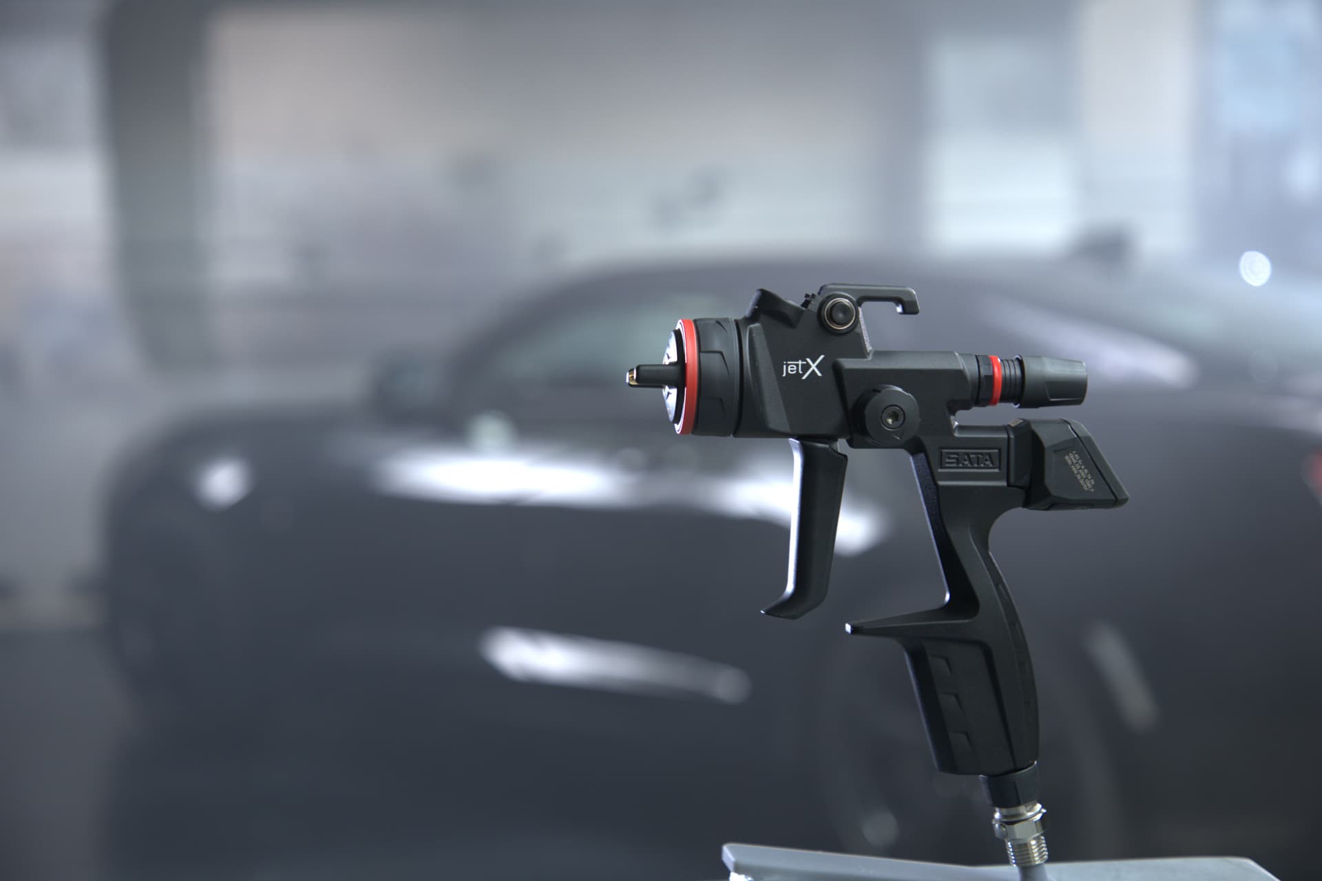 Clear coat at the highest level. The new nozzle concept of the jet X with labyrinth airflow system shows its advantages particularly clearly with clear coat. The fine atomisation results in perfect wetting and outstanding surface quality.