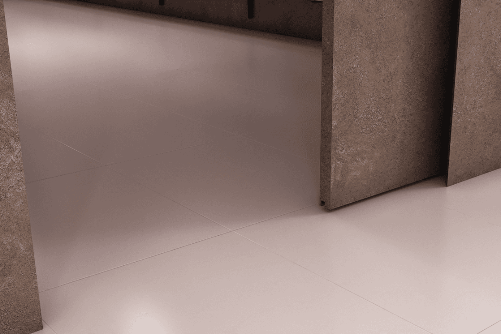 A perfectly concealed sliding door solution with no handles, bottom rail, or floor grooves. With a gentle push, the door opens effortlessly, eliminating the need for an external handle and reducing the presence of the door to the absolute minimum. The absence of a bottom rail means the passage is completely free of obstructions and accessible to all.